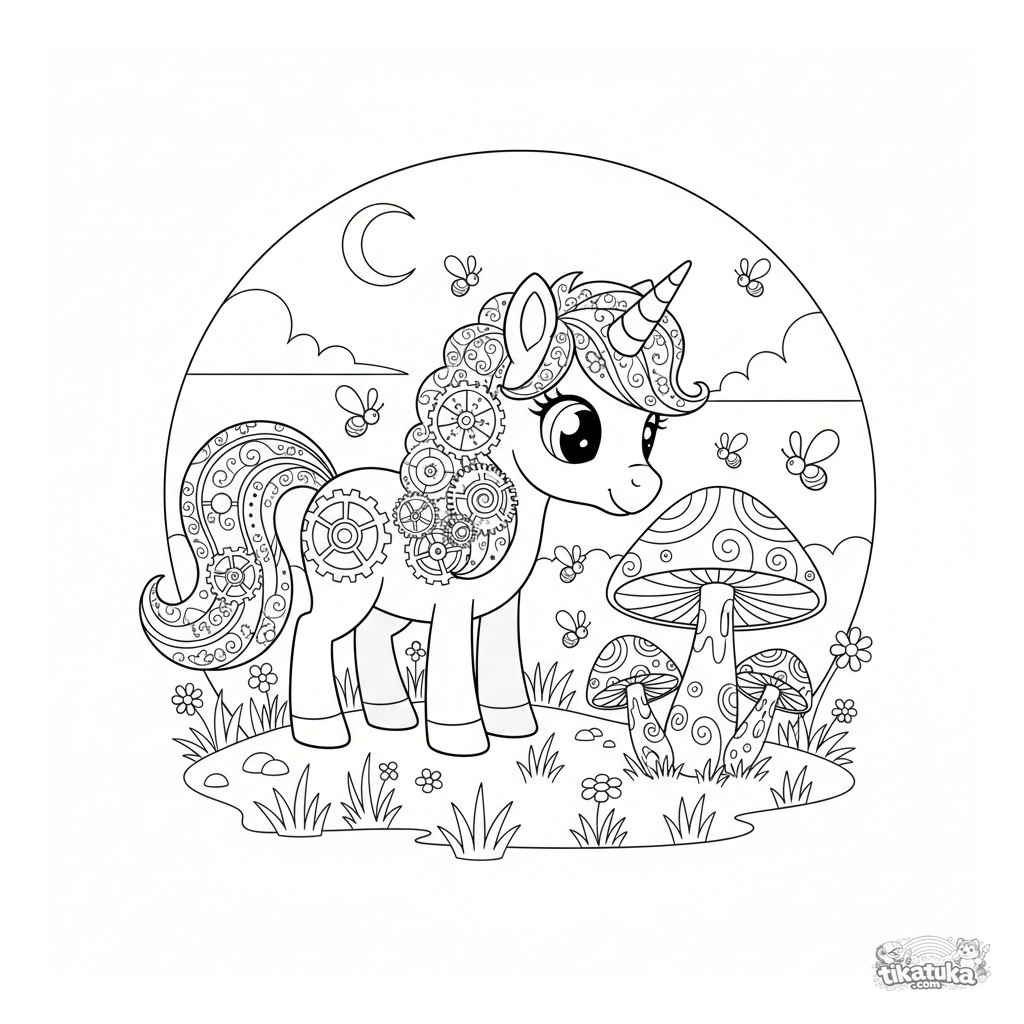Ein Ausmalbild zum Thema Ponys mit Detailgrad Schwer. Es passt für das Alter 7+ Jahre, lässt sich gut zu Hause drucken und sofort online öffnen.