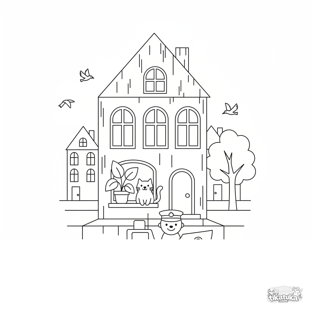 Ein Ausmalbild zum Thema Architektur mit Detailgrad Mittel. Es passt für das Alter 4-6 Jahre, lässt sich gut zu Hause drucken und sofort online öffnen.