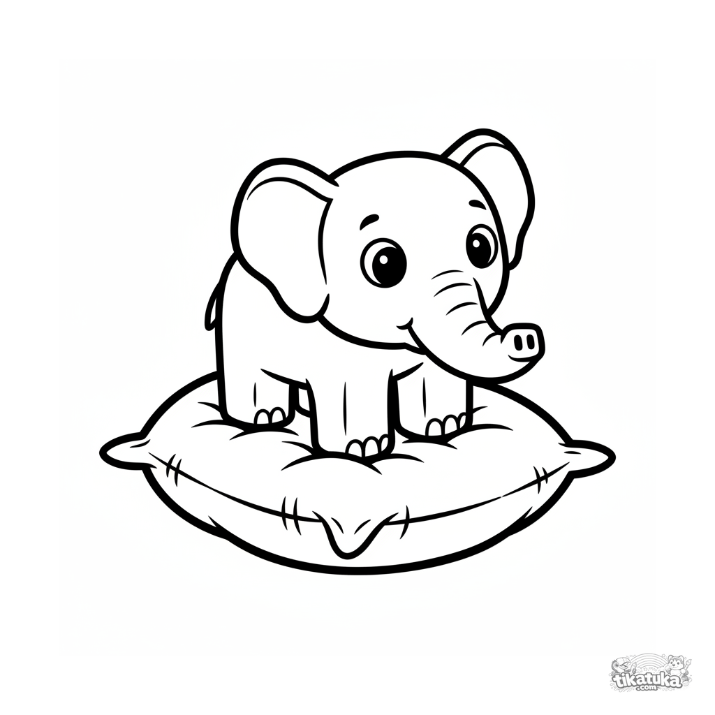 Holzspielzeug-Stil Ausmalbild für Kleinkinder 2-3: ein Elefant steht auf einem Kissen. Klare geometrische Formen, sehr einfach.