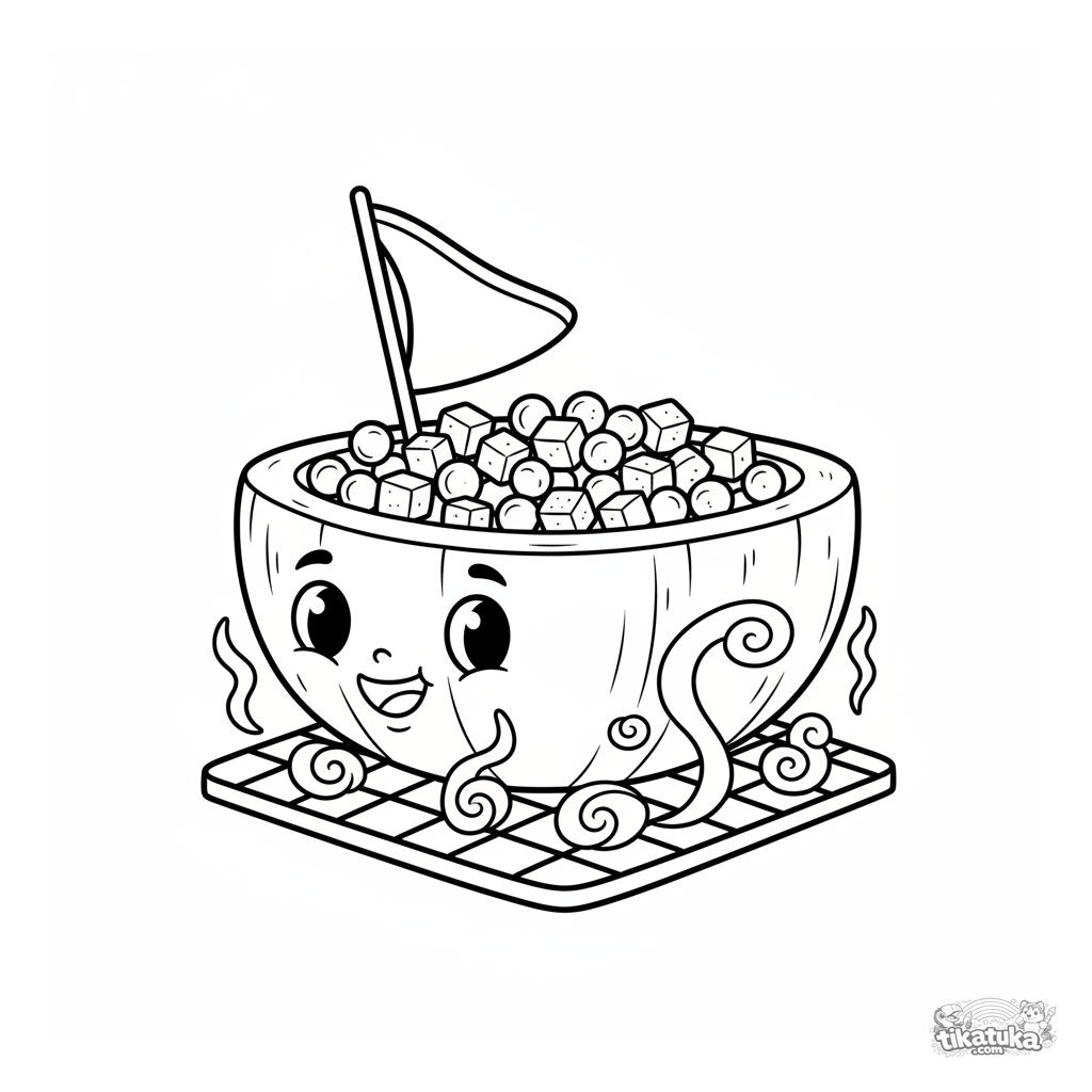 Ein Ausmalbild zum Thema Essen mit Detailgrad Mittel. Es passt für das Alter 7-9 Jahre, lässt sich gut zu Hause drucken und sofort online öffnen.