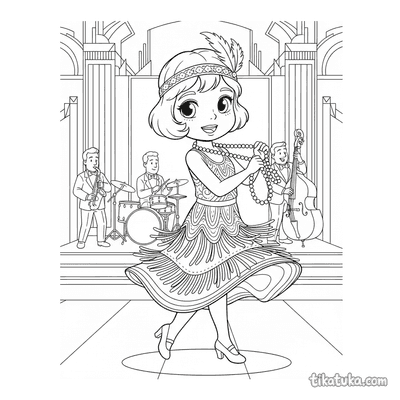 Tauche ein in die Welt der 1920er Jahre mit unseren Malvorlagen. Die Bilder zeigen typische Mode und Szenen aus dieser aufregenden Epoche. Kinder können die fließenden Linien und Details der Roaring Twenties entdecken.