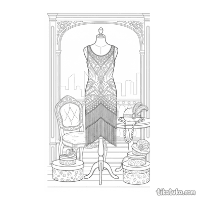 Unsere Sammlung zum Thema 1920er Jahre enthält vor allem elegante Flapper-Kleider in verschiedenen Posen. Die Motive zeigen die Kleider auf Schaufensterpuppen, auf dem Laufsteg, in einem Vintage-Laden oder wirbelnd auf einer Speakeasy-Party. Jedes Bild erzählt ein kleines Stück Geschichte dieser Zeit. Die klaren Schwarz-Weiß-Konturen der 1920er-Jahre-Motive eignen sich perfekt zum Ausdrucken. Du kannst alle 15 Malvorlagen auf einmal herunterladen und so eine ganze Kollektion zum Ausmalen bereithalten. Die detaillierten Umrisse laden dazu ein, mit Farben zu experimentieren und die Eleganz der Epoche zu gestalten.