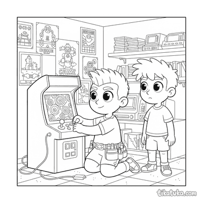 Diese Ausmalbilder entführen dich in die bunte Welt der Arcade. Du findest hier Szenen aus dem typischen Spielsalon mit Retro-Automaten und begeisterten Gamern. Die Motive zeigen die besondere Atmosphäre eines Arcade-Raums.