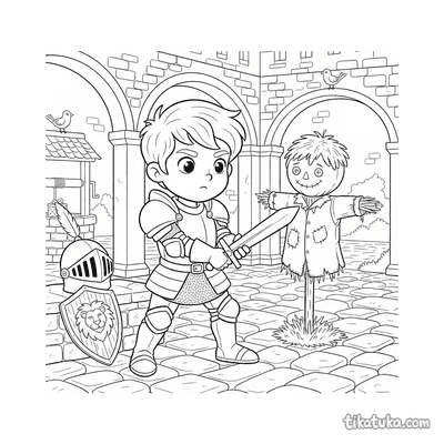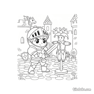 Diese Sammlung zeigt Ausmalbilder mit verschiedenen Rüstungen aus dem Mittelalter. Kinder können Ritter in voller Montur, junge Knappen und spannende Szenen aus dem Burgleben entdecken.