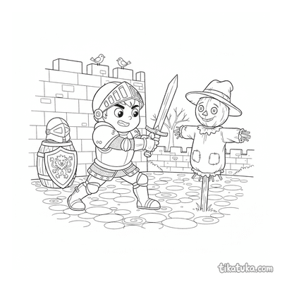 Die Malvorlagen zeigen detailreiche Rüstungen in typischen Situationen: Ein Ritter übt den Schwertkampf, ein Knappe poliert die Platten oder ein Pony-Reiter steht vor einer Burg. Auch humorvolle Szenen, wie ein Ritter der gegen einen rollenden Kürbis antritt oder eine geflickte Rüstung beim Pferdefüttern, laden zum Ausmalen ein. Alle 27 Vorlagen sind in klaren Schwarz-Weiß-Konturen gehalten, die sich gut ausdrucken lassen. Du kannst die Bilder einzeln herunterladen oder gleich mehrere Seiten auf einmal für einen Malnachmittag mit Freunden ausdrucken.