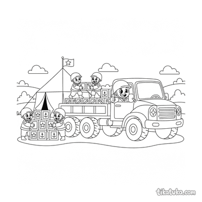 Ausmalbilder mit dem Tag "Militärlastwagen" für Kinder. Kostenlos herunterladen und ausdrucken.