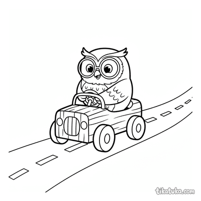 Eule Oof Fährt ein Vintage-Spielzeugauto