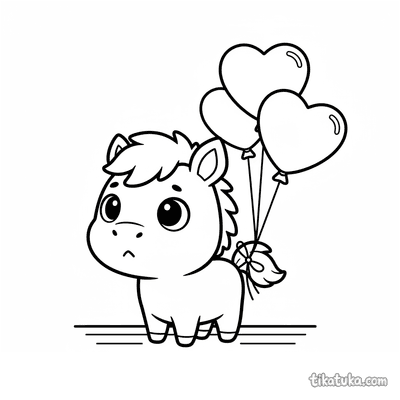 Kleines Pony mit Luftballons