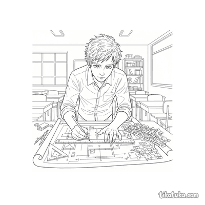 Die Malvorlagen zeigen Architekten, die an ihren Zeichentischen arbeiten, sowie detaillierte Blaupausen für Objekte wie ein Wasserflugzeug oder einen Hafen-Schlepper. Es gibt Szenen, in denen ein Lebkuchenmann-Architekt Pläne studiert oder ein junger Forscher alte Labor-Baupläne entschlüsselt. Auch kreative Motive wie ein Würfel-Mikroben-Baumeister oder die Blaupause für eine Kristallstadt sind Teil der Sammlung. Alle 41 Bauplan-Malvorlagen stehen als klare Schwarz-Weiß-Vorlagen zum sofortigen Ausdruck bereit. Du kannst die gewünschten Motive einfach herunterladen und in guter Qualität ausdrucken – sei es einzeln oder als ganze Serie für eine Malstunde zum Thema Technik und Konstruktion.