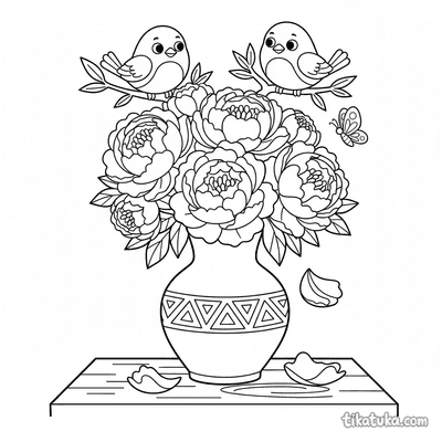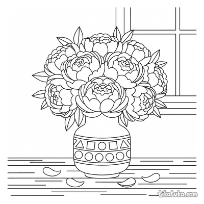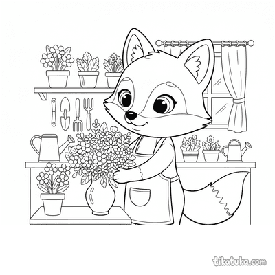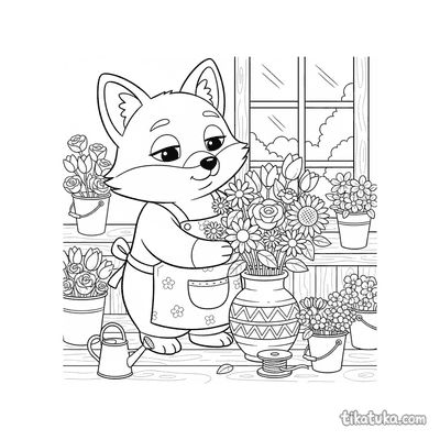 In den Malvorlagen findest du florale Kompositionen wie einen Pfingstrosenstrauß in einer Keramikvase, einen Lavendelstrauß im Einmachglas oder einen Papierschnitt-Pfingstrosenstrauß. Auch Szenen aus der Floristik sind dabei, etwa der Florist Foxy mit einem Strauß oder ein Igel, der Wildblumen auf einer Verandastufe arrangiert. Die klaren Schwarz-Weiß-Konturen der Sträuße eignen sich gut zum Ausmalen. Du kannst alle 14 Motive direkt herunterladen, um sie auszudrucken und mit Buntstiften oder Wasserfarben zu gestalten.