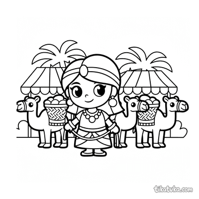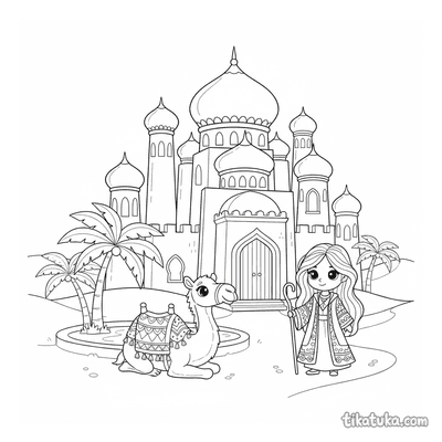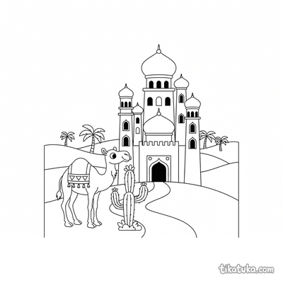In dieser Sammlung findest du Kamel-Malvorlagen mit spannenden Motiven. Es gibt Karawanen, die durch die Wüste ziehen, Prinzessinnen, die eine Parade anführen, und detailreiche Szenen mit Wüstenpalästen und Oasen. Alle 12 Vorlagen sind in klaren Schwarz-Weiß-Konturen gehalten, die sich gut ausmalen lassen. Du kannst die Bilder einfach herunterladen und ausdrucken, um sie mit Buntstiften oder Filzern zu gestalten, oder sie direkt auf dem Bildschirm online ausmalen.