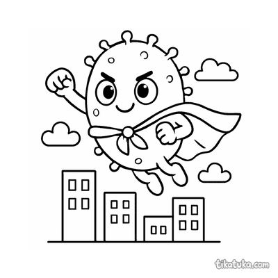 In den Bildern flattern Umhänge hinter Superhelden-Mikroben, Detektiv-Bakterien und dem Oktopus Bublik. Kinder finden auch Alltagsabenteuer, wie ein Mädchen in einer Regenjacke, oder fantastische Szenen mit einem Wal-Drachen und einer Korkrakete. Die klaren Umrisse der Umhänge und Figuren sind ideal für kleine Hände. Du kannst alle 10 Malvorlagen direkt herunterladen, bequem ausdrucken und sofort mit dem Ausmalen beginnen.