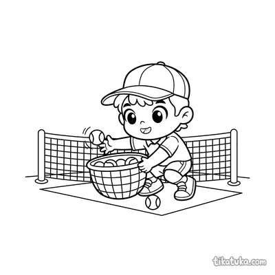 Balljunge/-mädchen fängt einen verirrten Tennisball