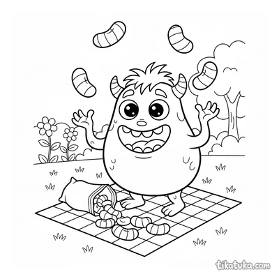 Birnenförmiges Monster Jongliert mit Gummibärchen