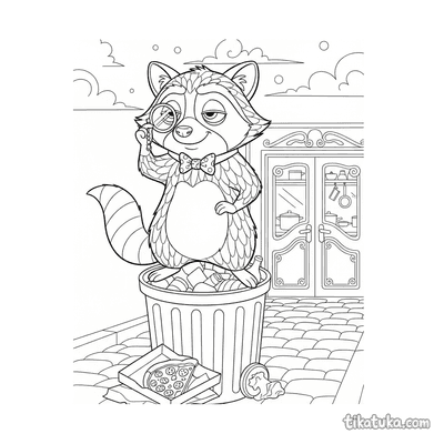 Überzeugtes Waschbär auf Mülltonne mit Monokel