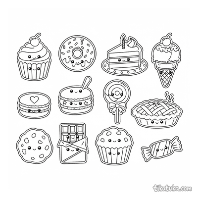 Stickerbogen: Kawaii Desserts
