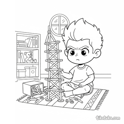 In den Bildern sind Kinder beim Bauen von Türmen, Vogelhäusern oder Sandburgen zu sehen. Ein kleiner Archäologe reinigt ein Dinosaurierfossil, während ein Junge einen Balsaholzgleiter baut. Auch ein freundliches Monster und ein Roboter, die sich auf ihre Konstruktionen konzentrieren, gehören zu den Motiven. Die schwarz-weißen Malvorlagen mit klaren Konturen eignen sich gut zum Ausdrucken. Du kannst alle 14 Bilder zum Thema Konzentration einzeln herunterladen oder sie direkt im Browser ausmalen, um die Feinmotorik zu fördern.