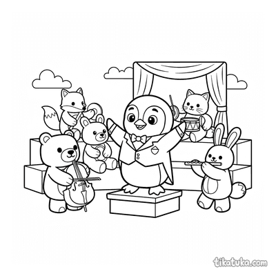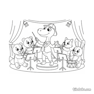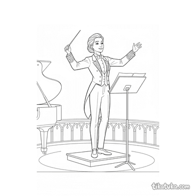Die Ausmalbilder zeigen Dirigenten in lustigen und kreativen Situationen, wie einen jungen Dirigenten mit einem KĂŒchenutensilien-Orchester oder einen Husky, der ein Ensemble leitet. Auch fantasievolle Szenen wie ein Seepferdchen, das ein Korallenriff-Orchester dirigiert, sind dabei. Alle 56 Malvorlagen sind in klaren Schwarz-WeiĂ-Konturen gehalten, die sich ideal zum Ausmalen mit Buntstiften oder Filzstiften eignen. Du kannst die Dirigenten-Bilder einfach herunterladen und in guter QualitĂ€t ausdrucken, auch mehrere Seiten auf einmal fĂŒr eine ganze Malstunde.