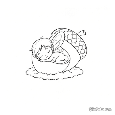 Fee schläft in einer hohlen Eichel-Wiege