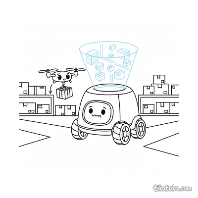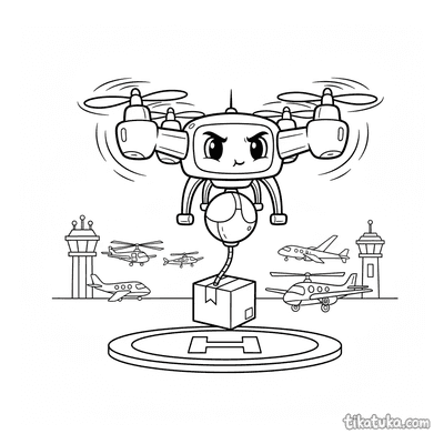 In den Ausmalbildern zur Lieferung sind freundliche Roboter auf fliegenden Untertassen, Postboten mit ihren Taschen und verschiedene Lieferwagen zu finden. Es gibt auch fantasievolle Motive wie ein Bakterium, das ein Paket bringt, oder dampfbetriebene Roboter mit Zeitungen. Die 54 Malvorlagen bieten klare Schwarz-Weiß-Konturen, die sich gut ausdrucken lassen. Du kannst die Bilder einzeln herunterladen oder gleich mehrere Seiten auf einmal für einen Malnachmittag mit dem Thema Zustellung und Transport auswählen.