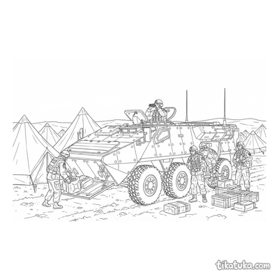 Ausmalbilder mit dem Tag "gepanzertes Transportfahrzeug" für Kinder. Kostenlos herunterladen und ausdrucken.