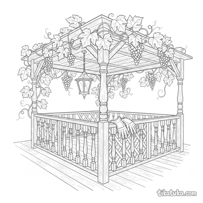 Architektonische Veranda-Skizze mit Ranken
