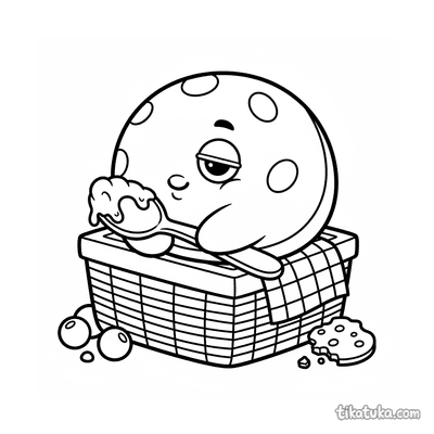 Schläfriges Donut-Monster Nickert auf Picknickkorb