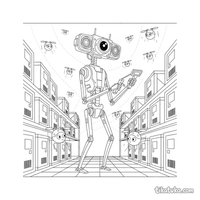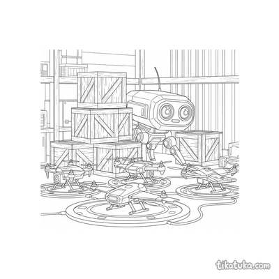 In dieser Sammlung findest du Drohnen und Roboter in Aktion: Tech-Erfinderhelden steuern ihre Fluggeräte, während Roboterhunde durch Lagerhallen patrouillieren. Heimliche Überwachungsroboter und große Scanner arbeiten zwischen Kisten und Regalen, und sogar Roboter-Gabelstapler sind im Einsatz. Die Bilder laden dazu ein, die Details der mechanischen Helfer und ihrer Umgebung auszumalen. Alle Drohnen-Vorlagen liegen als klare Schwarz-Weiß-Konturen vor, die sich leicht ausdrucken lassen. Du kannst die Bilder einzeln herunterladen oder gleich mehrere Seiten auf einmal für einen Malnachmittag mit Freunden auswählen und drucken.