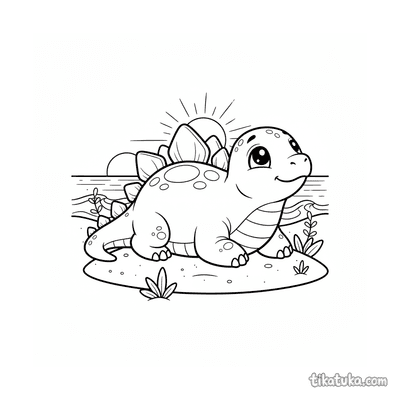 Stegososaurus sonnt sich auf einer Düne