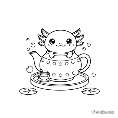 Axolotl lugt aus einer Keramik-Teekanne