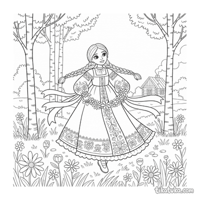 In dieser Sammlung findest du Szenen mit volkstĂŒmlichen SchĂŒrzen und Sarafans, Art-Nouveau-Kleidern mit organischen Efeumustern sowie detaillierte Stickmuster wie Brunnen und Vögel. Die Bilder zeigen auch Menschen bei der Handarbeit, etwa ein MĂ€dchen, das am Brunnen stickt. Die klaren Schwarz-WeiĂ-Konturen der Vorlagen eignen sich perfekt zum Ausdrucken. Du kannst alle 21 Stickerei-Bilder auf einmal herunterladen oder direkt im Browser mit Farben experimentieren, um die feinen Muster zu gestalten.
