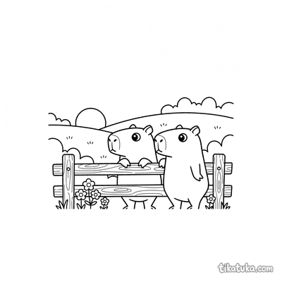 Capybara-Freunde lehnen am Zaun bei Sonnenuntergang