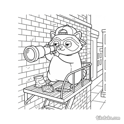 Dramatisches Waschbär mit Fernglas auf der Feuertreppe