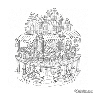 Ausmalbilder mit dem Tag "schwimmender Markt" für Kinder. Kostenlos herunterladen und ausdrucken.
