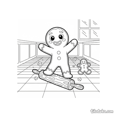 Lebkuchenmann reitet auf Nudelholz über Schachbrettboden
