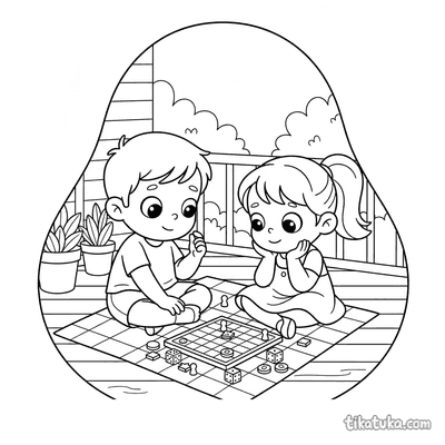 Geschwister spielen Brettspiel auf dem Verandaboden
