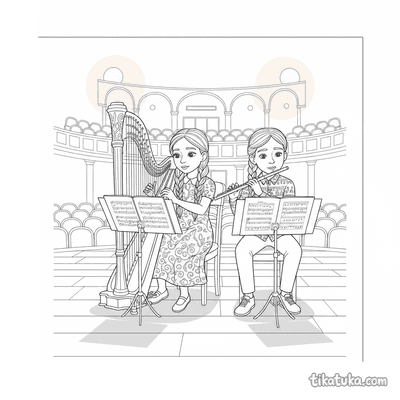 Alle 15 Malvorlagen haben klare Konturen und sind ideal, um sie einfach auszudrucken. Du kannst die Bilder einzeln herunterladen oder mehrere Seiten auf einmal für einen kreativen Nachmittag auswählen. Die schwarz-weißen Vorlagen laden dazu ein, die musikalischen Szenen mit Farbe zu füllen.