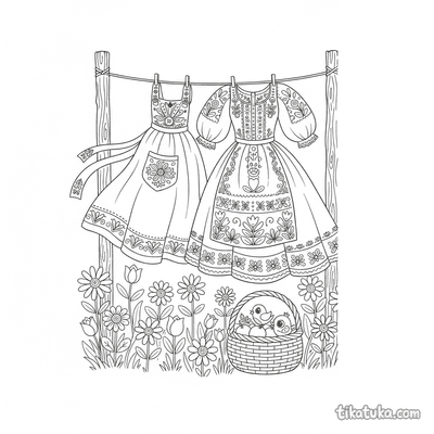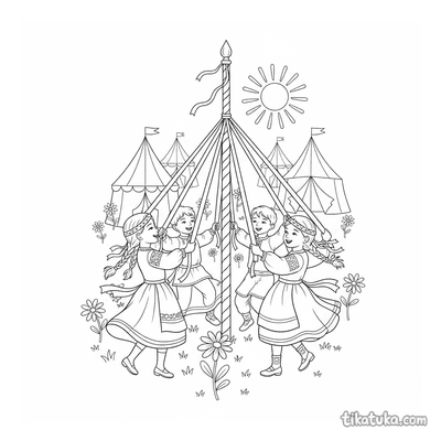 Die Ausmalbilder zur Volkstracht zeigen lebendige Szenen wie Kinder beim Tanz um den Maibaum, auf dem Erntefest oder beim Flechten eines Blumenkranzes. Du findest auch detaillierte Darstellungen von bestickten SchĂŒrzen und anderen Trachtenteilen, die auf der Wiese oder im Zimmer prĂ€sentiert werden. Alle 21 Malvorlagen sind in klaren Schwarz-WeiĂ-Konturen gehalten, die sich ideal zum Ausdrucken eignen. Du kannst die Bilder einzeln herunterladen oder gleich mehrere Seiten auf einmal fĂŒr eine Malstunde zum Thema Trachten und Tradition ausdrucken.