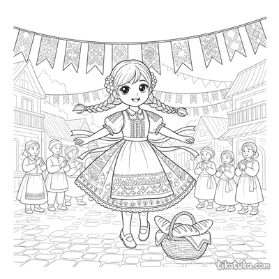 Diese Sammlung zeigt Ausmalbilder mit verschiedenen Volkstrachten und traditionellen Szenen. Die Motive laden Kinder ein, in die Welt der BrÀuche und Feste einzutauchen.