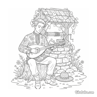 Ausmalbilder mit dem Tag "Gusli-Spieler" für Kinder. Kostenlos herunterladen und ausdrucken.
