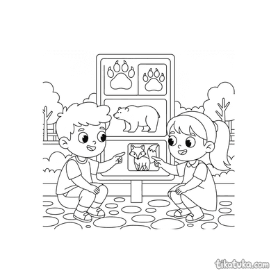Diese Ausmalbilder zum Thema Spuren laden Kinder ein, verschiedene Fährten und Aktivitäten zu erkunden. Die Motive zeigen, wie Tiere und Figuren ihre Spuren hinterlassen oder in Spielen interagieren.