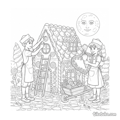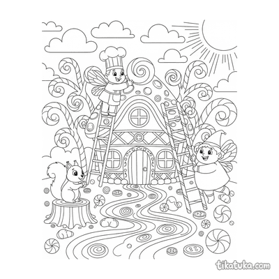 Ausmalbilder mit dem Tag "Lebkuchenhaus" für Kinder. Kostenlos herunterladen und ausdrucken.