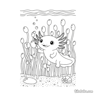 Neugieriger Axolotl zwischen leuchtenden Unterwasserpflanzen