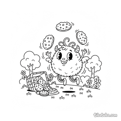 Pelziges Monster auf Federn Jongliert Kekse