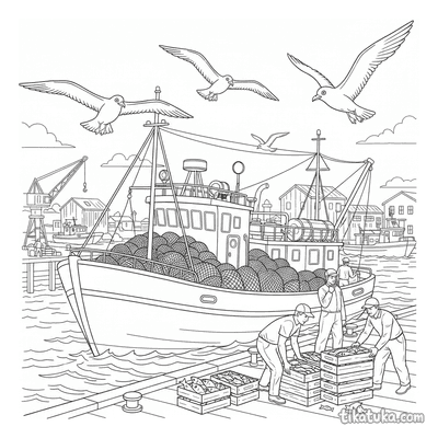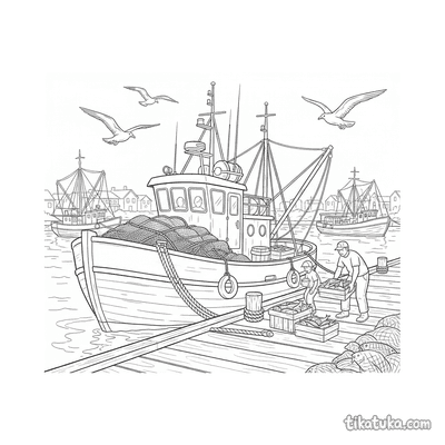 In dieser Sammlung findest du detailreiche Motive wie einen fröhlichen Schlepper, einen großen Fischtrawler beim Entladen oder eine chinesische Dschunke mit mehreren Segeln. Auch ein Husky auf einem Segelboot und ein schwimmendes Logistikzentrum laden zum Ausmalen ein. Die klaren Schwarz-Weiß-Konturen aller Hafenbilder eignen sich perfekt zum Ausdrucken. Du kannst die Vorlagen einfach herunterladen und für deine Kinder oder eine ganze Gruppe ausdrucken, um maritime Abenteuer mit Buntstiften zu erleben.