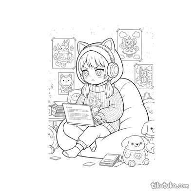 In dieser Sammlung findest du einen Igel auf der Bühne, einen Pinguin mit einer Schallplatte und einen Hund, der entspannt Musik hört. Auch ein Lofi-Musikproduzent im Studio, ein Kawaii-Hacker und ein Piratenradio-DJ sind mit dabei, alle mit ihren charakteristischen Kopfhörern. Die klaren Schwarz-Weiß-Konturen der 12 Vorlagen eignen sich ideal zum Ausdrucken. Du kannst die Bilder einfach herunterladen und in Ruhe zu Hause ausmalen oder sie direkt auf dem Bildschirm mit Farben gestalten.