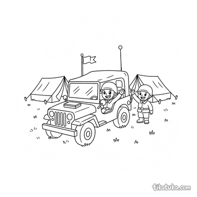 In dieser Sammlung findest du detailreiche Szenen eines Feldhauptquartiers. Dazu gehören ein Jeep Willys in der Nähe des Lagers, ein Versorgungs-LKW beim Entladen von Kisten, eine Feldküche bei der Essensausgabe und ein Feldkommandant am Funkzelt. Auch ein Aufklärungs-Buggy auf Meldungsfahrt und ein Chibi-Kommandowagen mit Funkgerät sind dabei. Alle 48 Hauptquartier-Malvorlagen liegen als klare Schwarz-Weiß-Vorlagen vor. Du kannst sie einzeln ausdrucken oder die gesamte Sammlung herunterladen, um sie gemütlich zu Hause oder gemeinsam mit Freunden auszumalen.