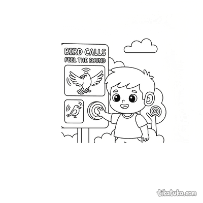 Kind mit Hörgerät am Vogelruf-Schild