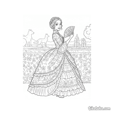 In den Malvorlagen findest du detailreiche Szenen mit historischen Gewändern, wie ein Renaissance-Festkleid auf einer Schneiderpuppe oder ein wirbelndes Flapper-Kleid der 1920er Jahre. Auch ein Rokoko-Ballkleid im Gartenlabyrinth oder ein Art-Nouveau-Kleid mit feiner Efeu-Stickerei warten darauf, mit Farbe gefüllt zu werden. Die 15 Schwarz-Weiß-Vorlagen mit klaren Konturen eignen sich perfekt zum einfachen Ausdrucken. Du kannst alle historischen Kostüme kostenlos herunterladen und entweder online ausmalen oder als PDF für deine nächste Malstunde speichern.