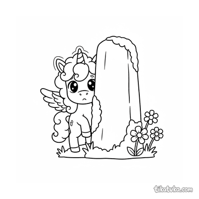 Geflügeltes Einhorn-Fohlen versteckt sich hinter einem Monolithen